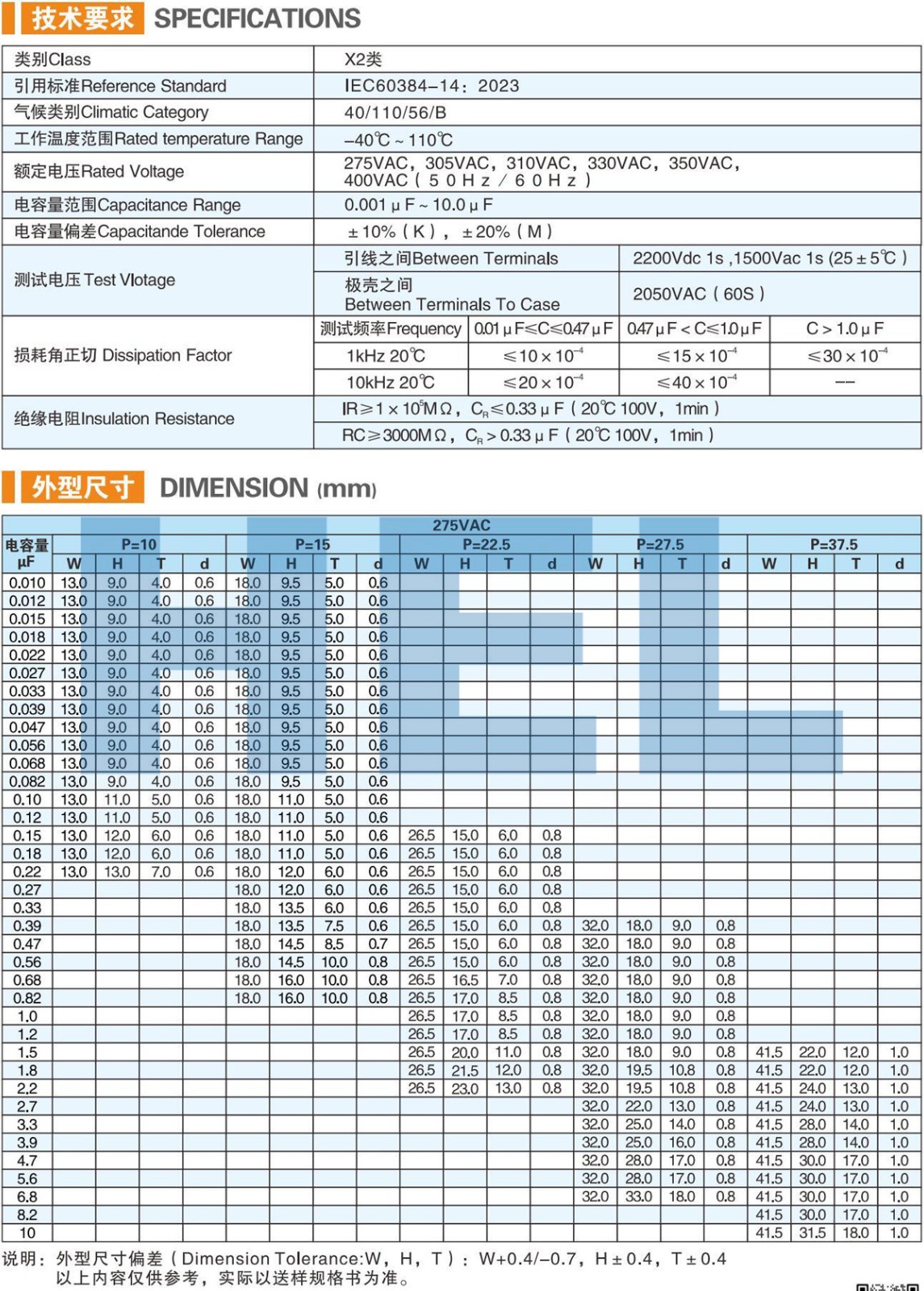 MPX 塑料外殼金屬化聚丙烯薄膜抗干擾電容器(X2)